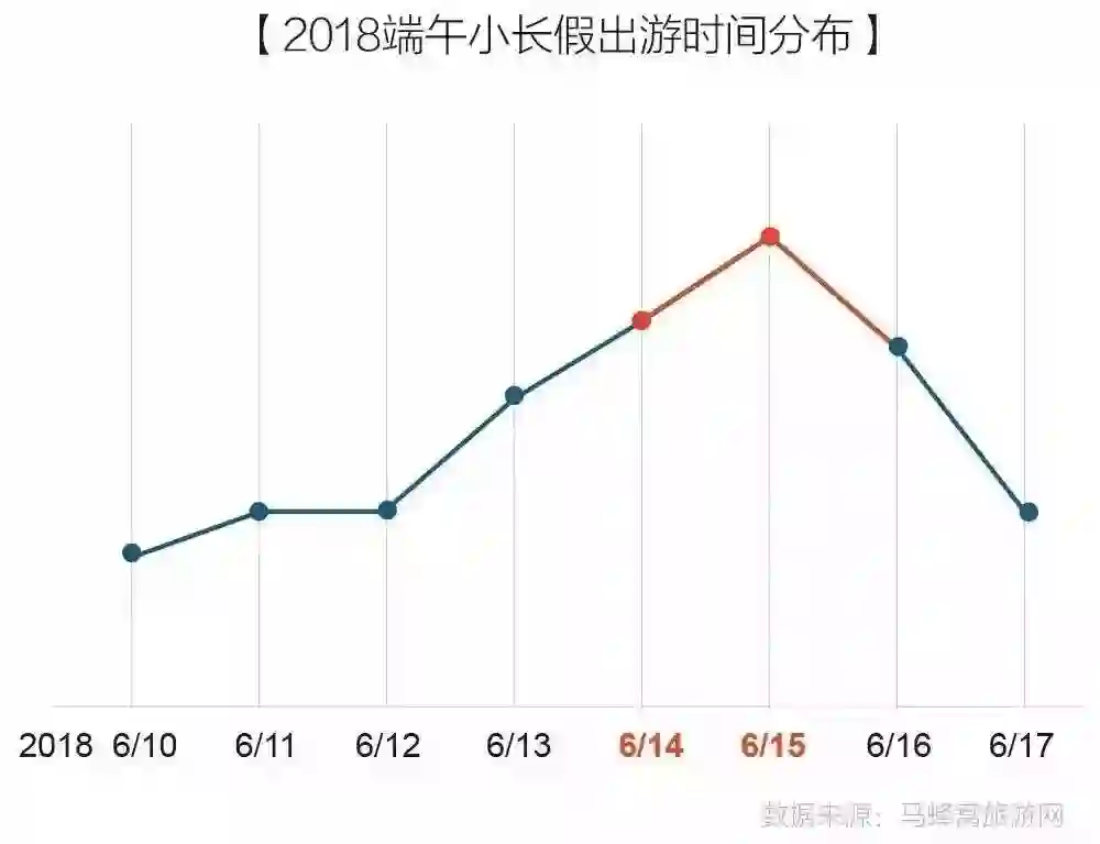 从出行时间来看,6月14日、15日反而超过假期第一天成为最高,与之对应的景区客流量在假期前两天将达到高峰。