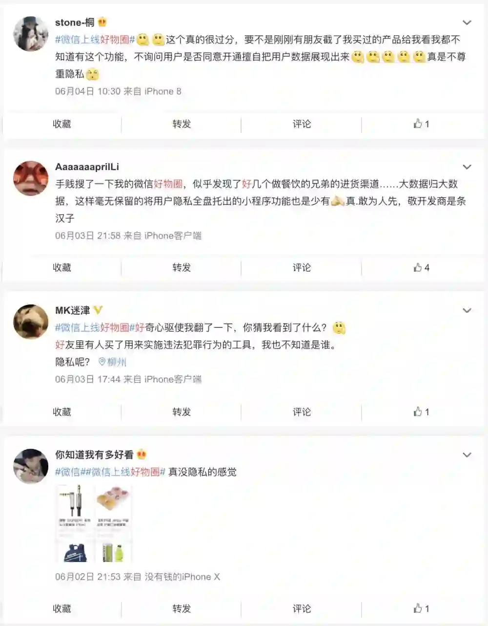 在网上随便一搜,关于“好物圈”的讨论,网友们关注的重点几乎都在“个人隐私”上。