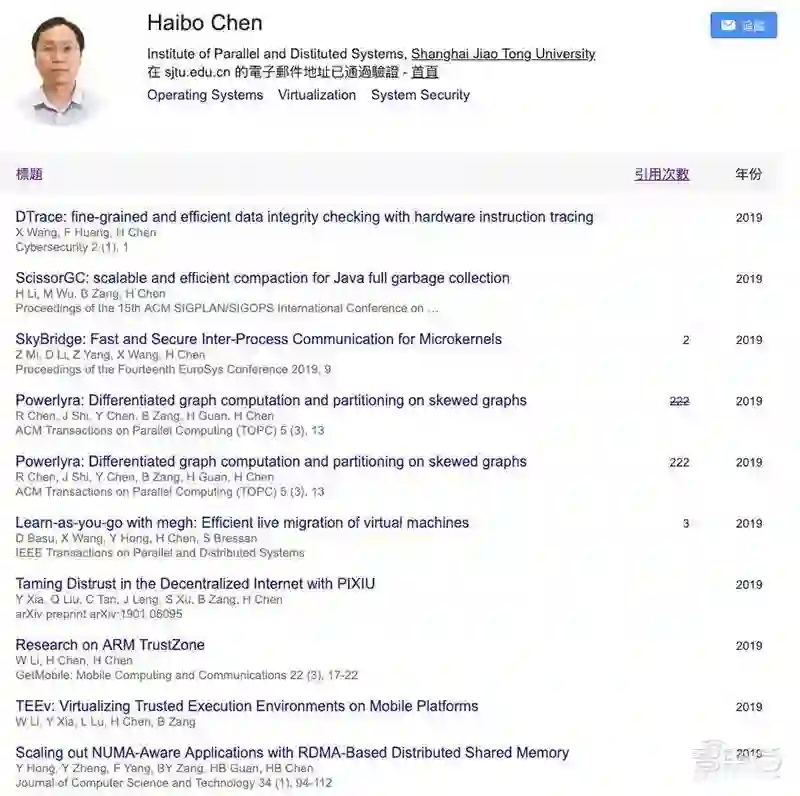 早在2011年,陈海波教授就在操作系统顶级学术会议SOSP上投中了全亚洲第一篇文章,接下来的五年时间里,他又陆续中了两篇。不仅仅是SOSP,在操作系统的各项顶级学术会议,OSDI Eurosys FAST等,陈教授也几乎刷了个遍。