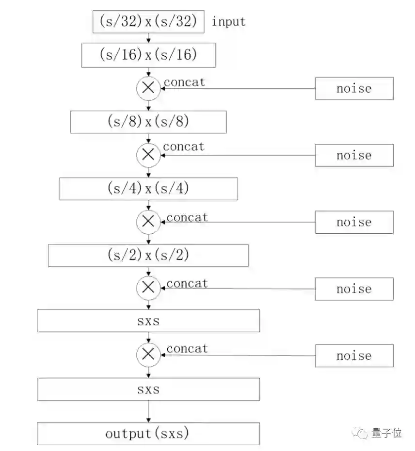 首先,他们训练了解码器的生成能力,即输入一个大小为s32 x s32的随机向量,通过逐层的上采样加上concat的随机向量,最终生成一张s x s大小的人脸,确保生成的人脸看不出真假。