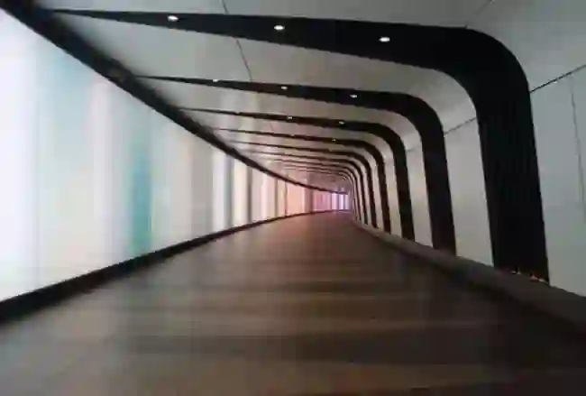 地下建筑中的节能灯使用荧光材料发光,并与玻璃中庭一起保持室内照明。