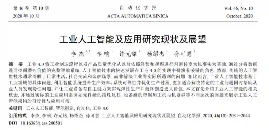 后台回复“工业人工智能现状” 可以获取《工业人工智能及应用研究现状及展望》专知下载链接索引