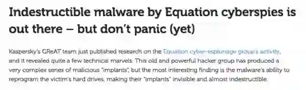 随后,来自俄国(硬盘生产国是美国、韩国和岛国,所以没有洗地的嫌疑)的卡巴斯基有一篇分析文章,有劝大家散了的意思,文中解释说磁盘上有个叫“hard drive firmware reprogramming”的东西,这是硬盘厂商留着日后发现产品问题之后做更新的机制,这一机制被黑客利用了。