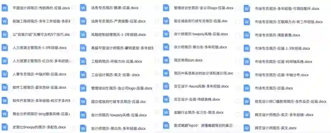 数十种风格的简历:或大气磅礴、或低调内敛、或专业学术、或朝气蓬勃,应有尽有,总有一款你能看上。