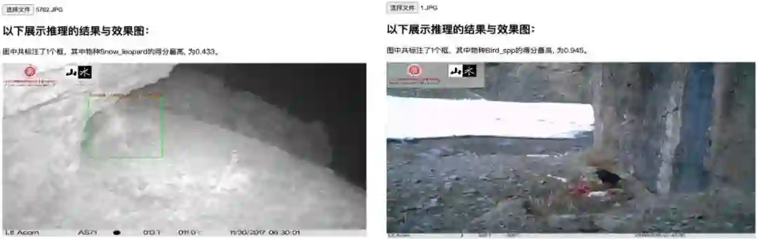 虽然模型仅训练了 10 个物种,对于其他三江源地区物种(如藏狐、兔狲、马麝等),模型也能检测出来 85% 以上的动物,其中多数被检测为同类物种,例如藏狐被检测为同为犬科的赤狐或狼,马麝被检测为同为有蹄类的岩羊或白唇鹿。