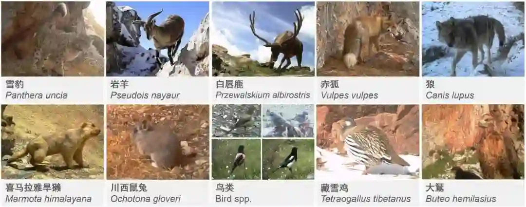 ,包含雪豹、岩羊、白唇鹿、赤狐、狼、喜马拉雅旱獭、川西鼠兔、鸟类(除藏雪鸡、大鵟外,其余未再提供二次细分类别的鸟类统属鸟类这一大类)、藏雪鸡、大鵟,共 12680 张照片,其中 12180 张作为训练集,500 张作为验证集。