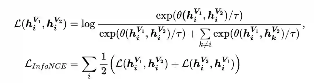 图对比学习中常用的损失函数是 InfoNCE 损失 [1] ,公式如下: