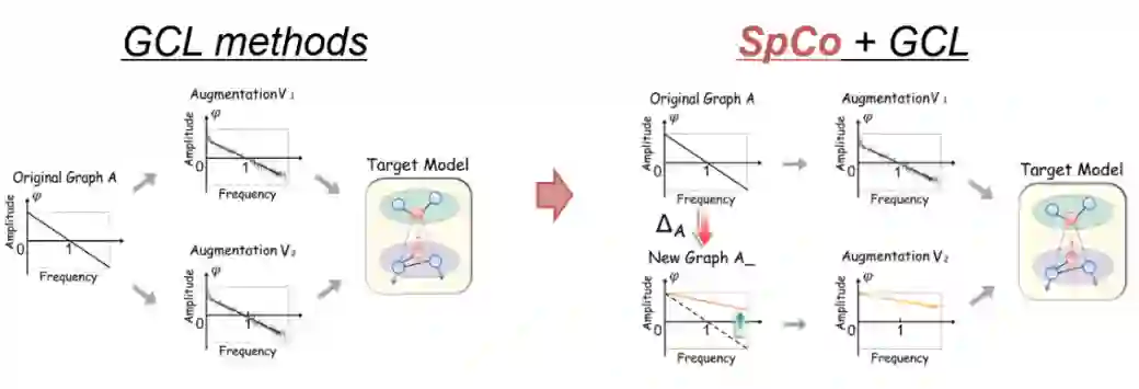 进一步思考图对比学习中的增广策略,表面上看都是改变了图结构,但我们知道,图结构的改变本质上往往意味着图谱上不同频率的强度发生变化,比如低频信息或者高频信息发生改变。这种想法启发了我们或许可以从谱域视角去探索图结构增广的有效性。