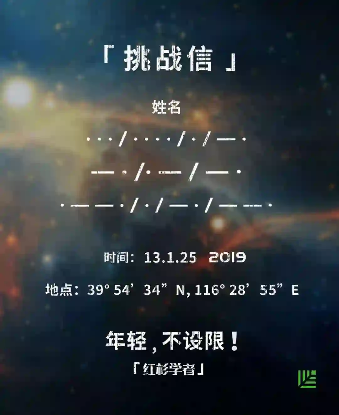 那么,TA到底是谁?我们在此发出一封独特的挑战密信——破译下面的密码,就能破解「红杉学者」终极面试官的真实身份,你敢不敢接受挑战,解密摩斯密码?(文末有惊喜)