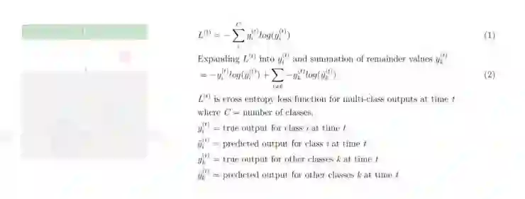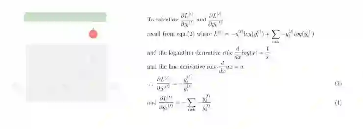 第一步:为了计算代价,需要先定义损失函数。一般根据具体手中的任务来选择该损失函数。在这个例子里,对于多分类输出问题,我们采用交叉熵损失函数 L⟨t⟩,其具体计算过程如下: