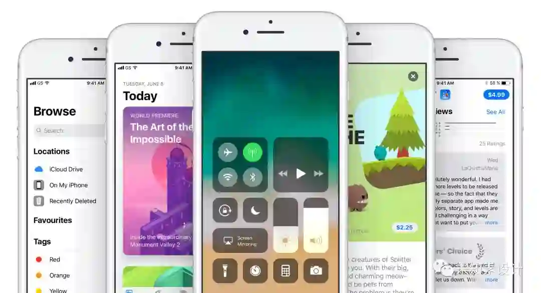 由于IOS12没有太大的设计更新,我们主要看IOS11,应用大量的圆角卡片式设计,大面积的背景图,效果冲击力更强,点击欲望也更强了,页面加入超大标题栏字体,这跟以前的小字号细字体有很大的区别,阴影也是比较高级的大阴影。