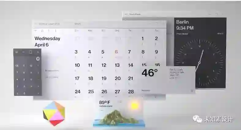 通过不同材质的运用,打破扁平,苹果毛玻璃,微软亚克力材质,相信未来也会有更多材质加入。