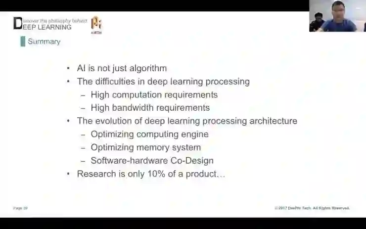 姚颂首先简单介绍了一下深鉴科技。深鉴科技的英文名 DeePhi 是 Deep Learning 和 Philosophy 的结合,这也是他们的 slogan“Discover the philosophy behind deep learning” 所传达的。