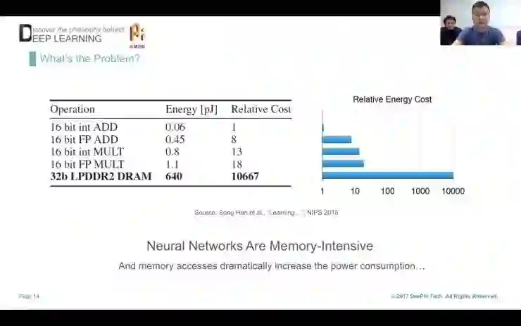 存储密集还带来一个问题,就是存储带来的功耗会比片上计算高出 2 到 3 个数量级。这也是 GPU 这样的(片上缓存很小所以需要读取内存的)平台很难降低功耗的原因。