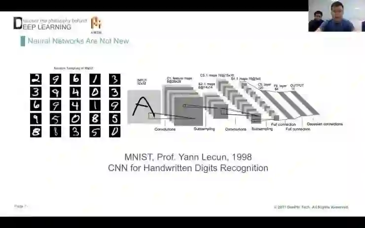 神经网络的概念并不新颖了,Yann LeCun 在 1998 年就提出了 MNIST 数据集和 CNN。只是当时的计算平台很弱,所以只能是小图、黑白两色,数量也只有数万张。