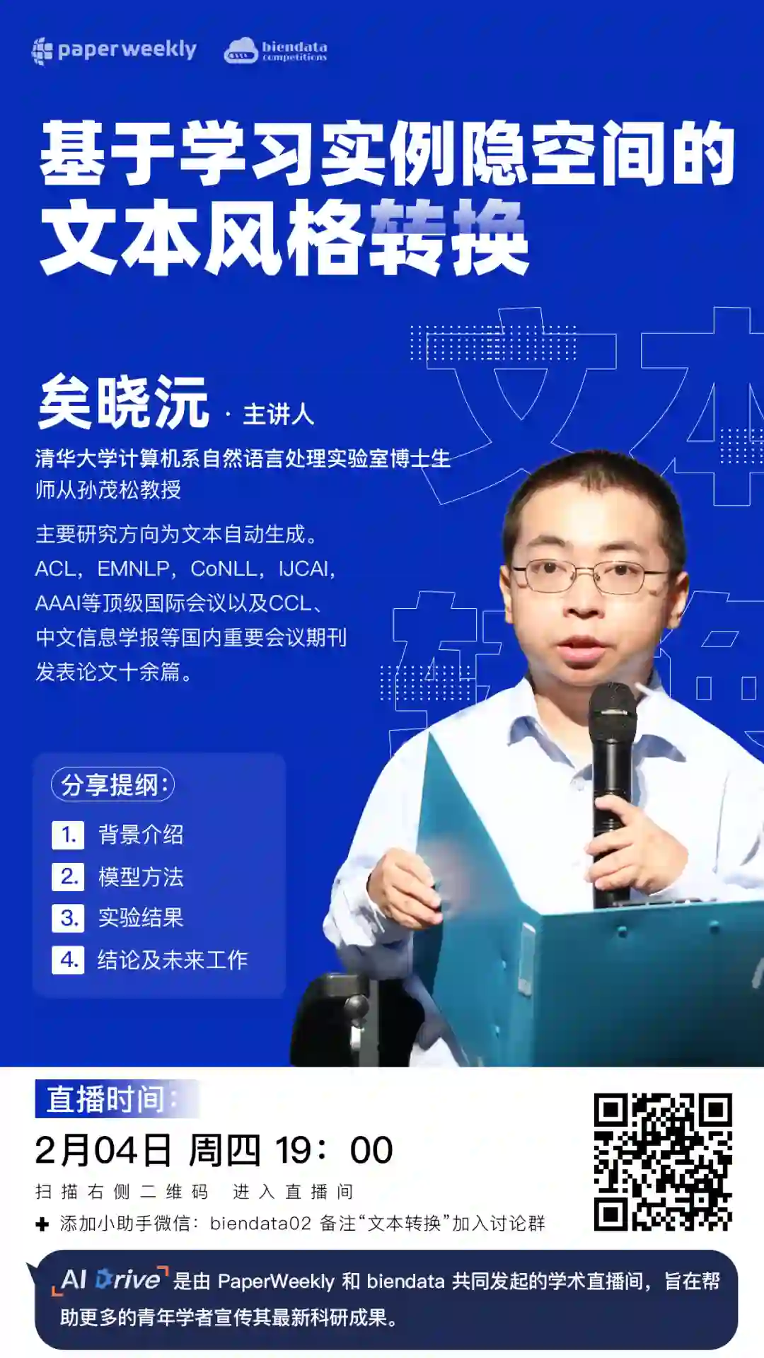 本期 AI Drive,我们邀请到清华大学计算机系自然语言处理实验室 (THUNLP) 博士生矣晓沅,为大家解读其发表于 IJCAI 2020 的最新工作。对本期主题感兴趣的小伙伴,2 月 4 日(周四)晚 7 点,我们准时相约 PaperWeekly B 站直播间。