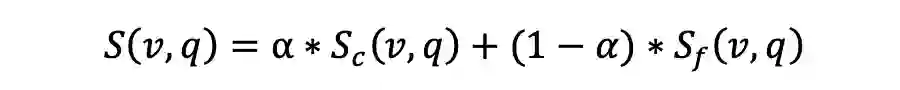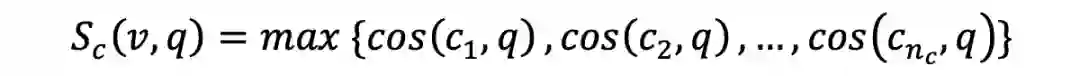 在部分相关的检索任务中,若文本与视频中的某一片段相关,则认为文本与该视频相关。因此作者首先计算视频段特征序列 C 中每个片段与文本特征表示 q 之间的相似度,并将文本与片段最大的相似度作为文本与整个视频的相似度。对于相似度取值,作者认为取平均值会使得相关片段信息被大部分的低相似度片段模糊,所以取最大值作为视频片段尺度相似度 。此外,作者将相似度最高的视频段特征 作为关键视频段特征。