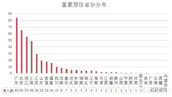 此外,富豪居住量进入前十的中西部省份只有四川、河南,分别为10位、8位。其余全部为东部省市。重庆有7位富豪列11位,超过多个人口体量比其大的省。