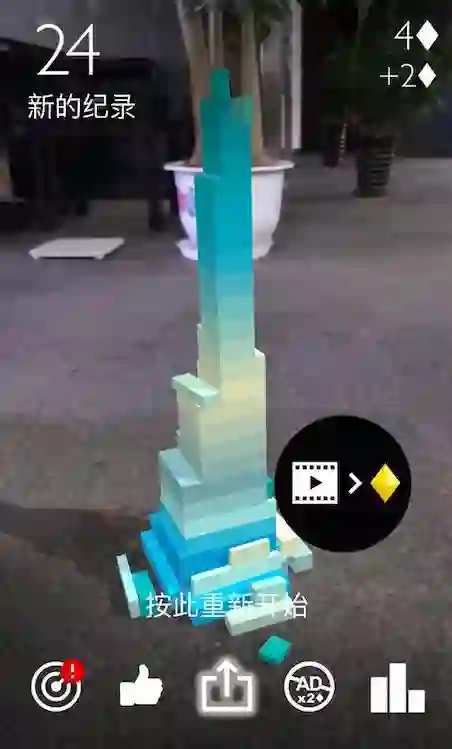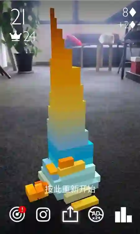 这款游戏是《Stack AR》,简单说,有些像 AR 版的搭积木。