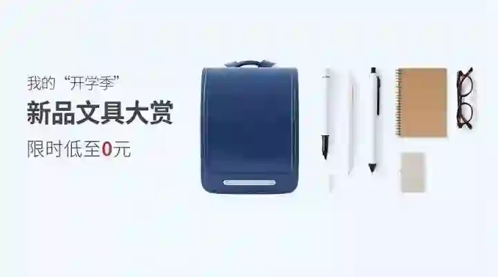 文具用品:冷静的色调,商品排列有序,让人联想到干净整洁的工作台,同时也尽显商品精致。