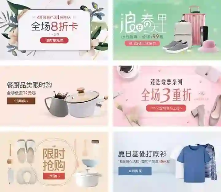 当广告投放在不同的渠道中时,那面对的用户也是不尽相同。所以设计输出在维持品牌特性的前提下,需要增加其平台用户的好感度。比如在云音乐渠道投放,会增加一些音乐流行元素,减少距离感,游戏平台同样也是。以男性为主的平台,例如邮箱内的广告,选用单品,纯色背景,干净简洁符合男性审美。