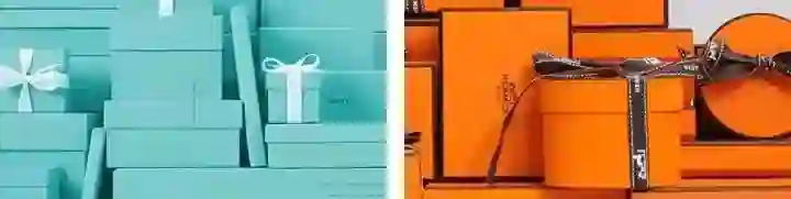 品牌的识别度非常重要。就比如对于大多数女生来说,以下两张图,不用仔细辨别就能说出左边就是蒂芙尼,右边就是爱马仕。品牌识别度非常高,仅仅靠色彩就能辨别。同样,在众多电商中,严选的营销设计已经开始区分于其他电商,拥有了较高的辨识度。