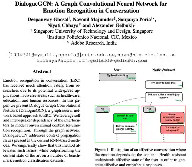 论文名称:DialogueGCN: A Graph Convolutional Neural Network for Emotion Recognition in Conversation