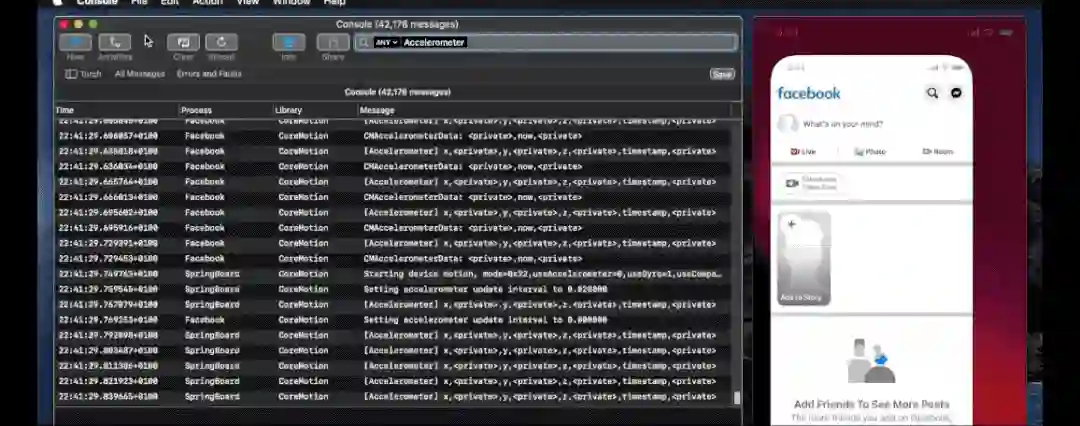 Tommy还实际检测了Facebook等App读取加速度计数据的情况。