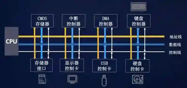 总线英文名叫Bus,你猜的没错也是公共汽车的意思。总线是一个非常广泛的概念,在传统计算机硬件体系中应用的非常广泛。