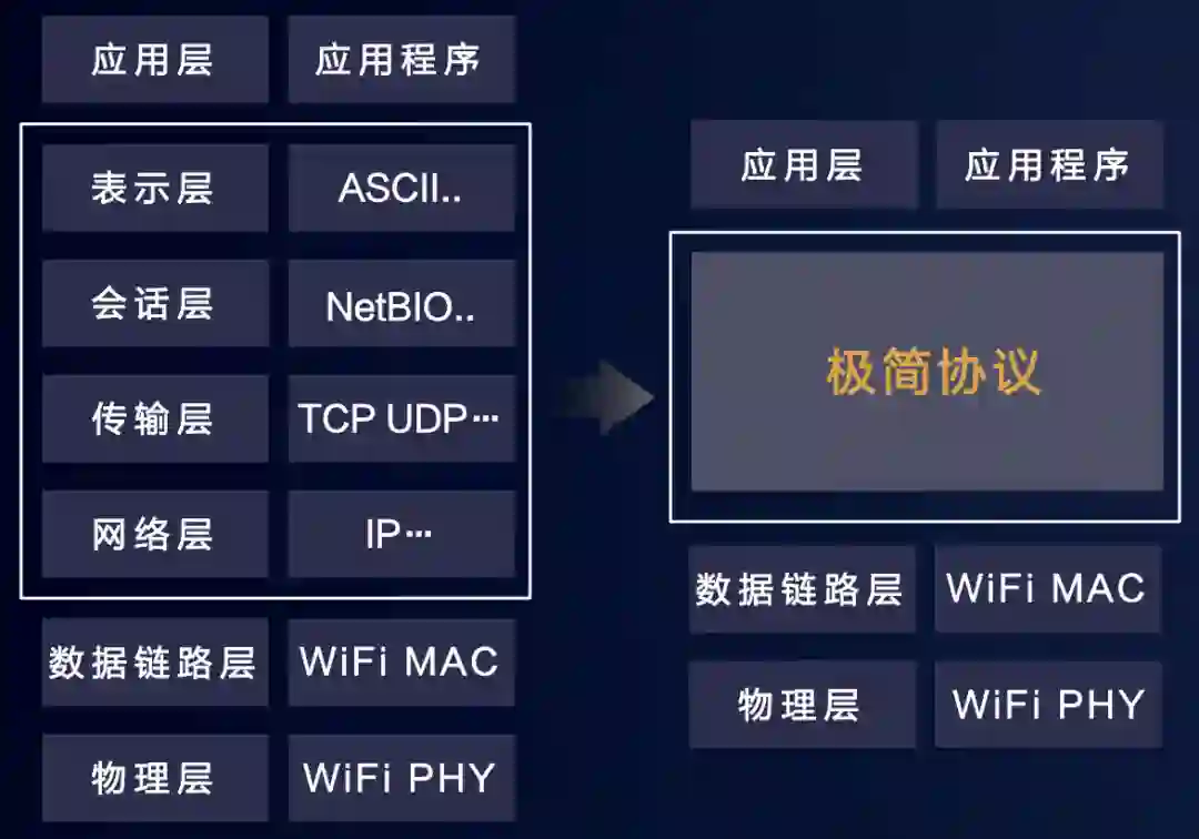 将中间的四层协议栈精简为一层提升有效载荷,有效传输带宽提升20%