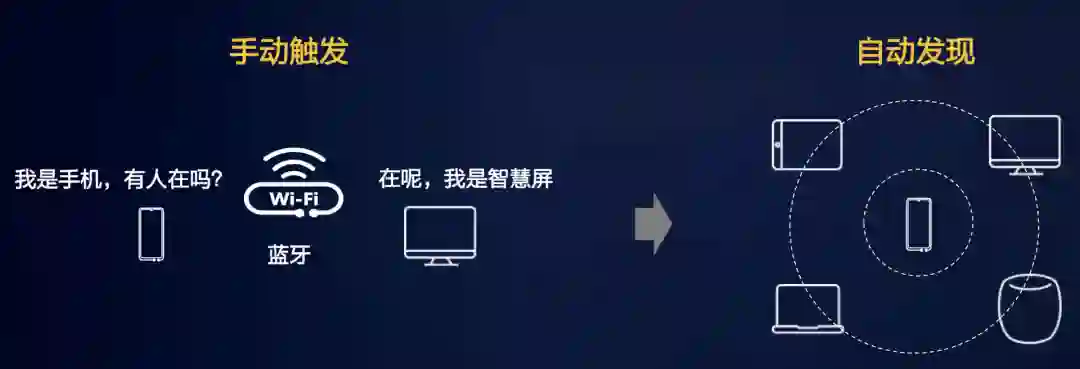 软总线提出了自动发现的概念,实现用户零等待的自发现体验,附近同账号的设备自动发现无需等待。
