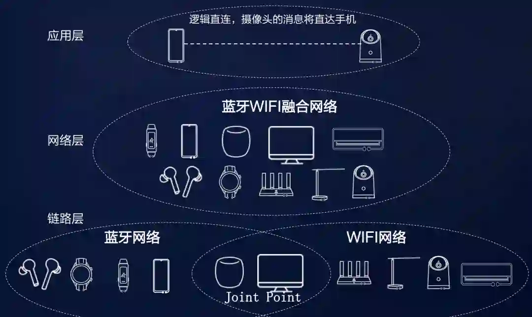 软总线可以自动构建一个逻辑全连接网络,用户或者业务开发者无需关心组网方式与物理协议。