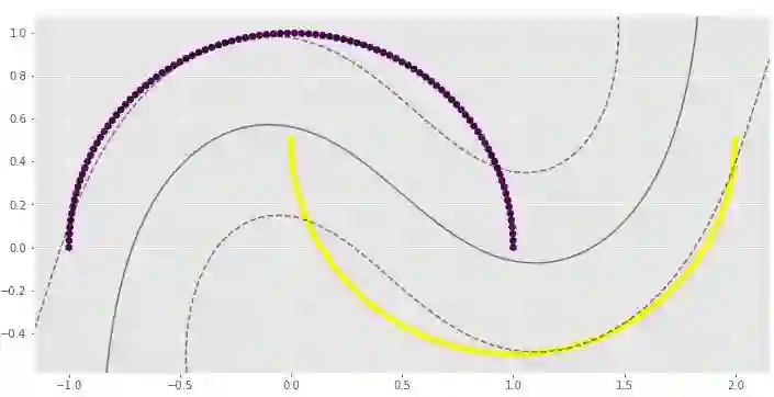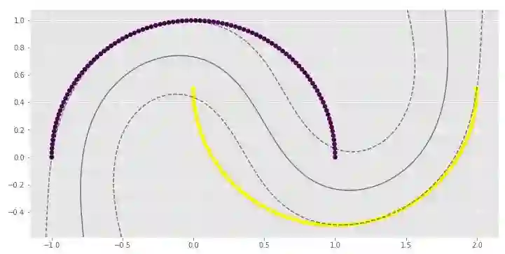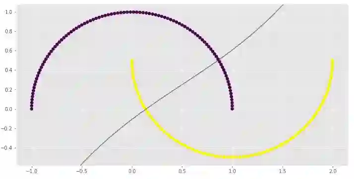 plt.rcParams['figure.figsize'] = (12, 6)style.use('ggplot')X, y = make_moons(n_samples=200)# Auto gamma equals 1/n_featuresdef draw_svm(X, y, C=1.0, gamma='auto'):