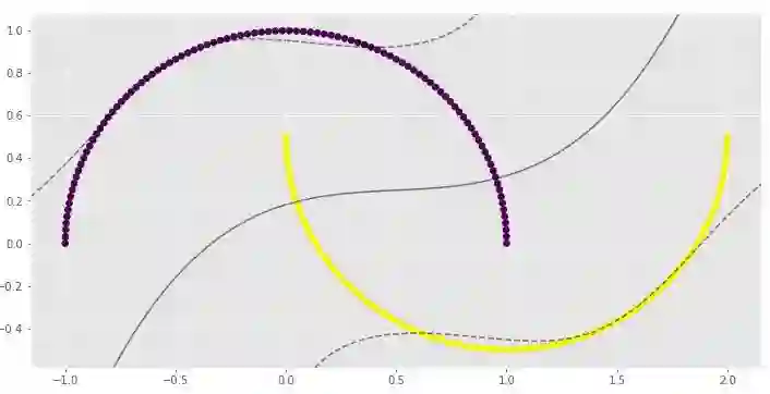 添加多项式特征非常简单。但是低度多项式不能处理复杂的数据集,并且具有较高的多项式度将会产生大量的特征,使得模型太慢。在这种情况下,我们可以使用多项式内核来避免这个问题。多项式内核具有以下格式: