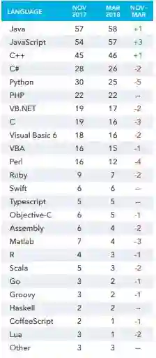 至于另外一个曾被寄予厚望的 Kotlin ,甚至并未进入前25名,处于最后的“其他”列表中。之前有调查显示,目前大部分的 Kotlin 开发者都转换自 Java 开发者,且他们多数仍然在同时使用 Java 。许多其他调查结果也显示,Kotlin 这种年轻语言正在越来越受欢迎。然而,正如上面所看到的,人气的增加并不能直接转化为商业用量的增涨。