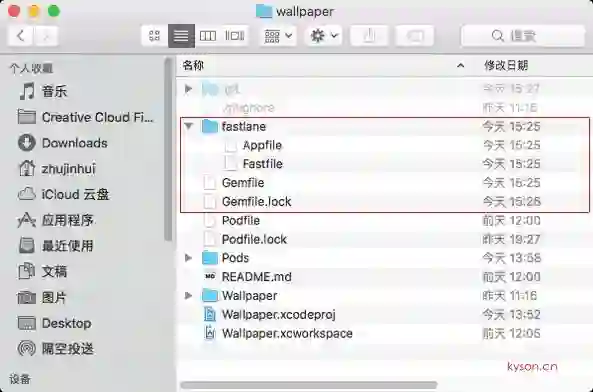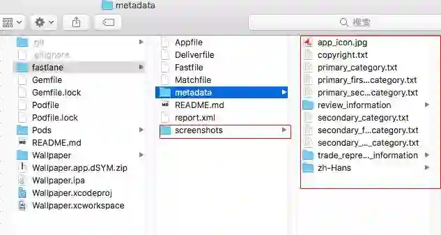 具体的安装和初始化,本文稍后会详细讲述,先带大家分析一下安装后的fastlane的目录结构。红色区域就是多出来的文件。本项目是笔者的一个APP Store上线项目,大家可以点击这里获取。