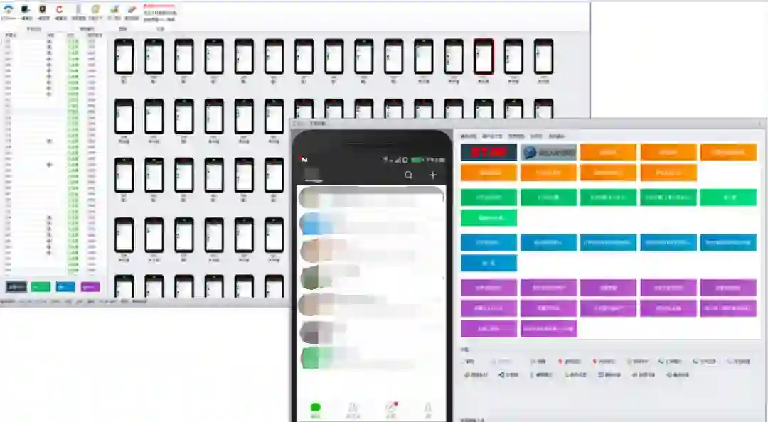 “人肉刷量”含金量虽高,效率却跟不上业务量的爆发式增长。很快,“群控”被引进产业协作中,以弥补人工刷量效率低下的缺陷。群控,也就是通过系统自动化集成的技术,实现由一台电脑控制多台手机、多个帐号的批量操作。