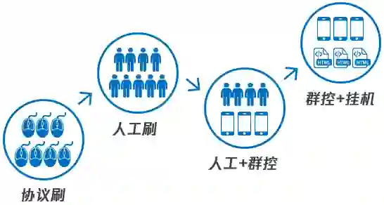 挂机的崛起与兴盛,也就是这两年来的事情。在何聪投身挂机事业之前,整个行业的主流刷量手法历经了四轮的更迭。在古早时候,刷量的原始手段是“协议刷”,即直接采用代理IP+用户登录态来模拟协议,简单、直接、技术含量低。
