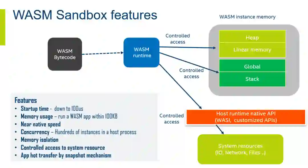 安全运行第三方代码:这个功能在云端或者边缘计算中非常有意义,也是现代容器技术如 Docker 的核心价值之一。在移动设备、物联网设备、智能小家电以及可信运行环境上对这样的功能也有非常强烈的需求。