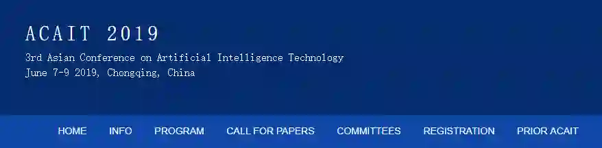 由中国人工智能学会主办,重庆理工大学承办,日本人工智能学会、重庆理工大学期刊社、重庆两江人工智能学院共同协办的“第三届亚洲人工智能技术大会”将于2019年6月7-9日在重庆举办。现将征稿相关事宜通知如下: