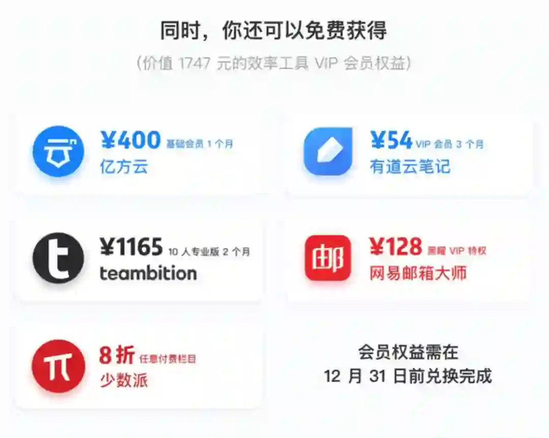 福利派为大家带来了3 个月的有道云 VIP 会员特权,多项权益免费用:
