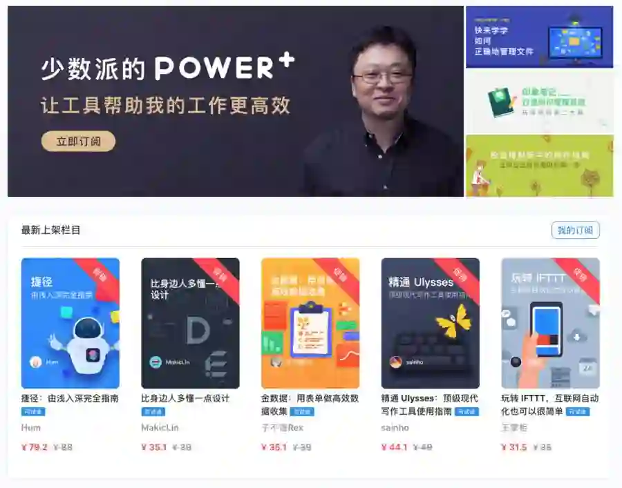 另外,做一个小预告,少数派招牌生产力栏目 Power+ 以及即将上线的 Power+ 2.0 会员也可以使用这个 8 折优惠券,订阅即可优惠 40-50 元。如果确定要购买 Power+ ,可以先买这个课程,折扣下来就更加划算了。