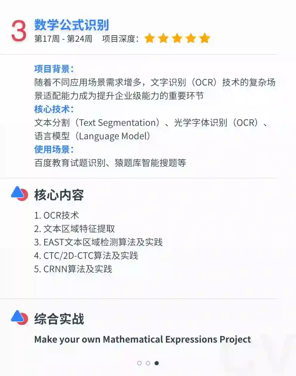 百度飞桨与后厂理工学院精选NLP/CV/计算广告与机器学习3大方向9大AI前沿工程项目,并提供脱敏数据集供学员实战使用,旨在培养具有核心竞争力的AI工程师。