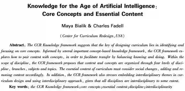 文献来源:Maya Bialik & Charles Fadel. Knowledge for the Age of Artificial Intelligence:What Should Students Learn? January2018.Center for Curriculum Redesign .Boston,Massachusetts,www.curriculumredesign.org。本报告系第二至第四部分,经作者授权,本文翻译时有删节。