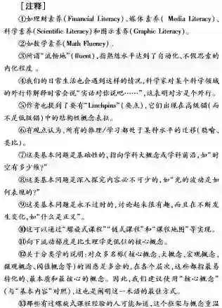 可以说,培养读写素养(literacy)①与流畅性(fluency)②的努力已经将这些理念扩展到语言领域之外了,且越来越受欢迎,这绝非偶然。归根结底,素养是运用信息进行认识的能力,③它表达了这样一种理念:努力培养业余专家(expert amateurism)以及为未来学习做好准备。④精通某一学科意味着要掌握该学科的核心概念,或者“像该学科的从业者一样思考”(Wineburg et al.,2014)。遗憾的是,这些概念是思考的基础,它们通常是不言而喻的,且难以枚举。