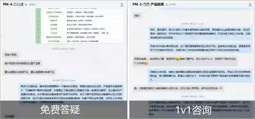 学习期内容提供4天不限次免费答疑,有问题可随时向班主任提问;另外,表现优异的同学还有机会获得一次 1V1 职业咨询,助你找准职业发展方向!