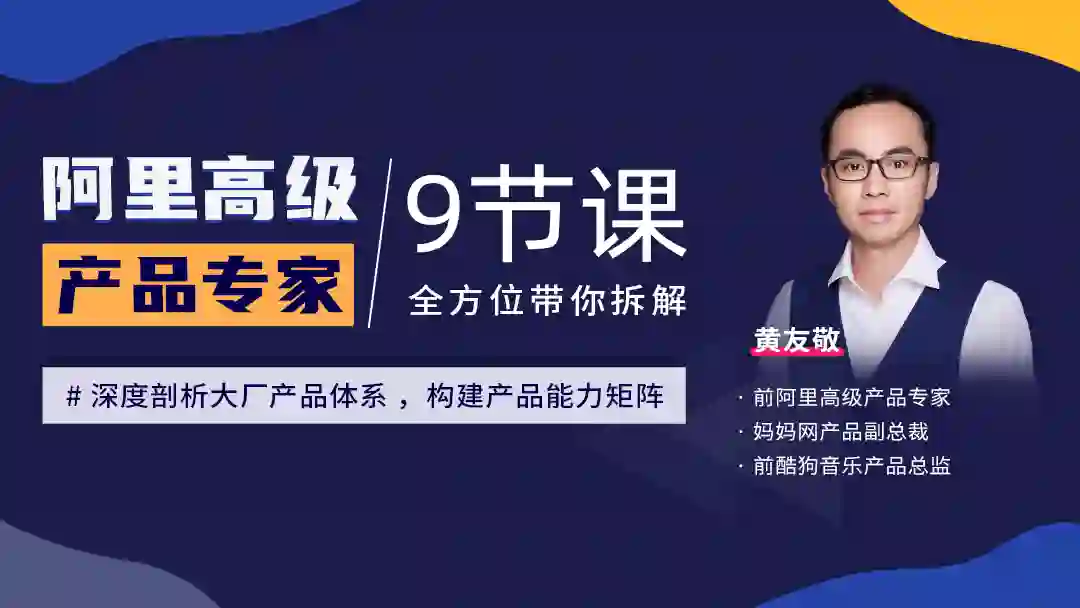 我们请到前阿里高级产品专家、酷狗音乐产品总监黄友敬,用9节干货课跟你讲清楚,大厂专业的产品经理都是如何思考与工作的!
