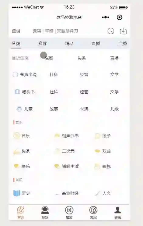 喜马拉雅APP分类页面原图: