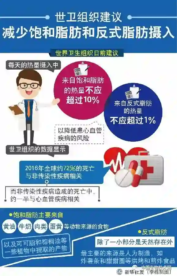 反式脂肪最大的健康危害是,会增加人们罹患心血管疾病等的风险,对公共卫生构成潜在威胁。世卫组织估计,反式脂肪的摄入每年在全球范围内导致超过50万人死于心血管疾病。