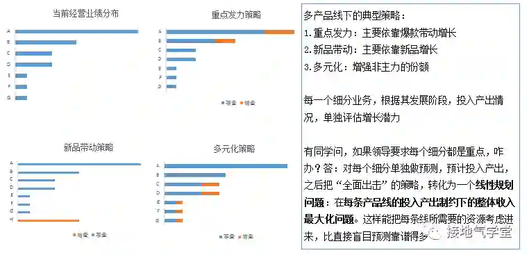 更糟糕的做法,是试图建立一个神威无敌大将军超牛逼模型,一模解千愁,把各种各样的问题都分析清楚——真要有这么厉害的玩意,强烈建议不要打工了,直接去炒股,一摸一个准,下个世界首富就是你,欧耶!梳理问题逻辑,层层递进,多种方法组合,才是支持决策的正道。